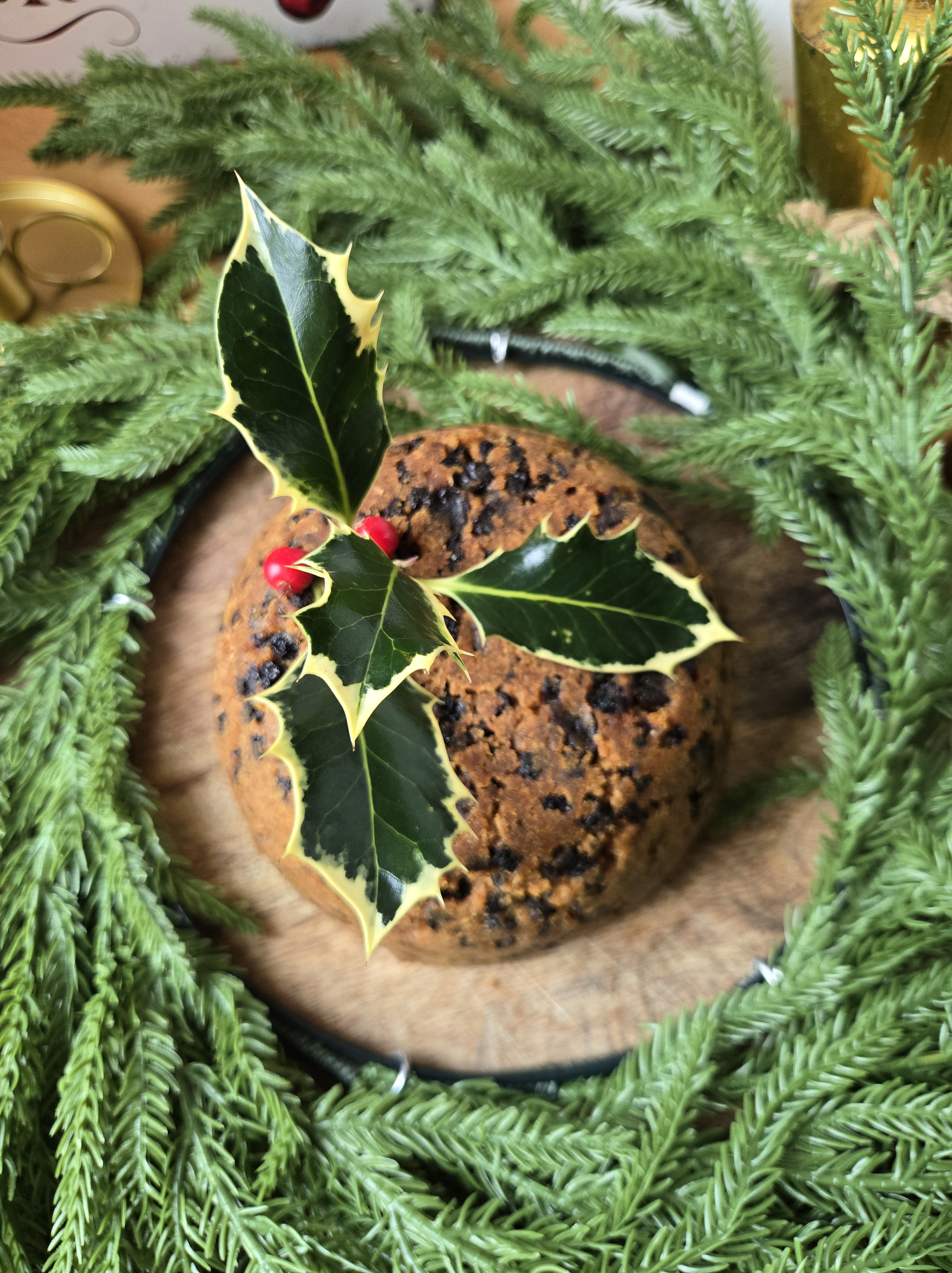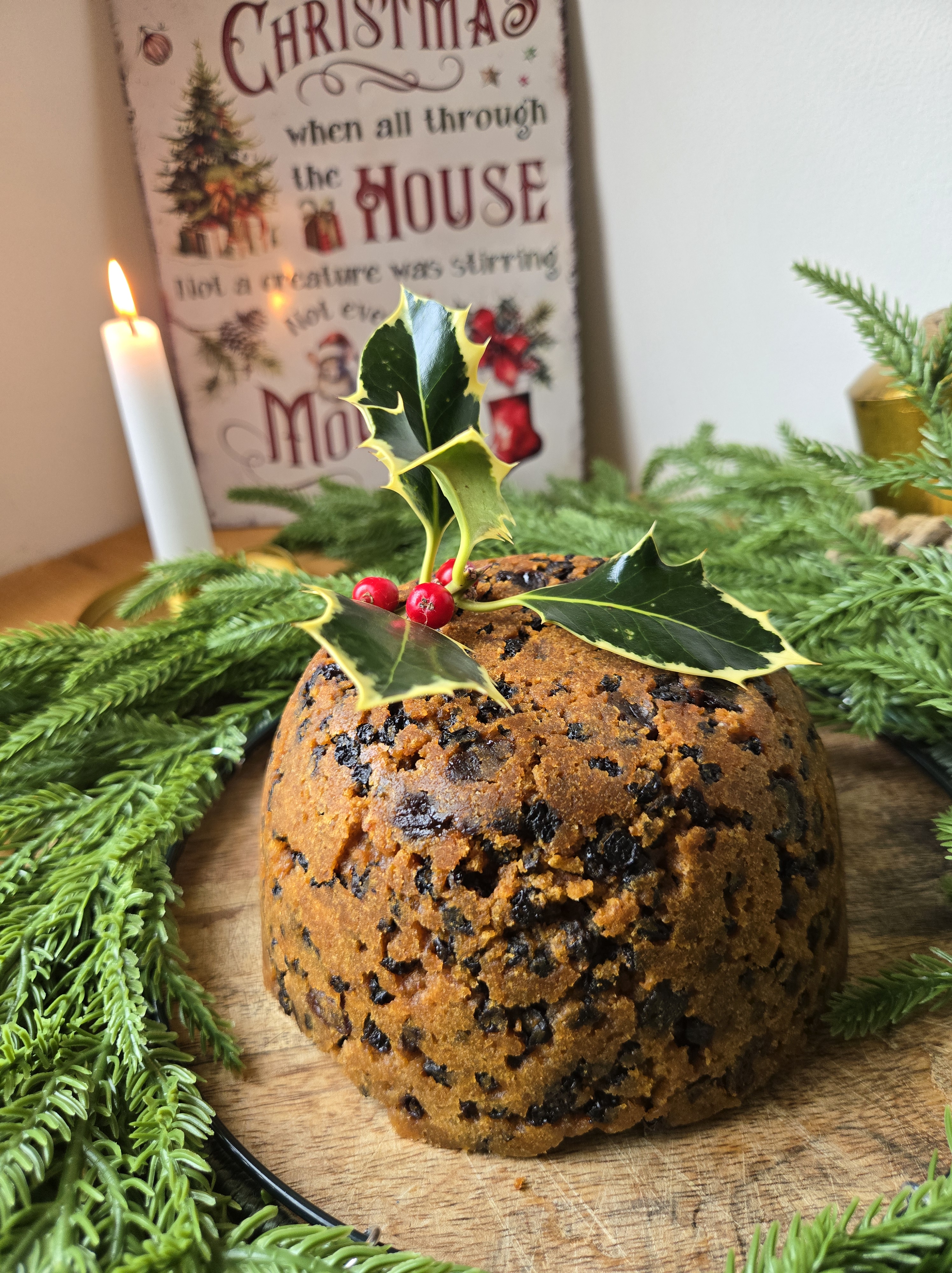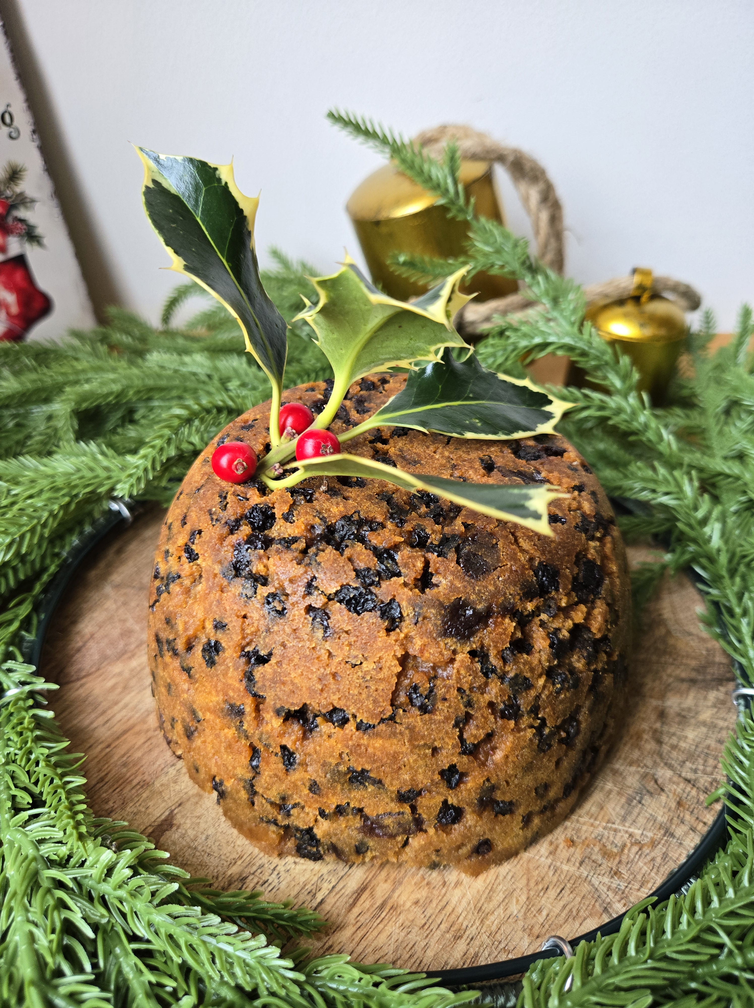 YOU WANT TO STEAM IT ON THE LOWEST HEAT FOR 6 HOURS WITH THE LID ON. KEEP CHECKING THE WATER LEVEL AND TOP UP IF NEEDED - AFTER 6 HOURS REMOVE THE PUDDING FROM THE PAN. LEAVE TO COOL FOR !% MINUTES AND THEN REMOVE THE FOIL AND TIP OUT THE PUDDING ONTO BAKING PAPER. LEAVE TO COOL DOWN FULLY AND THEN IT’S READY TO BE STORED. WRAP IN BAKING PAPER AND THEN RE WRAP IN TINFOIL AND KEEP IN A TIGHT STORAGE TUB UNTIL CHRISTMAS.
