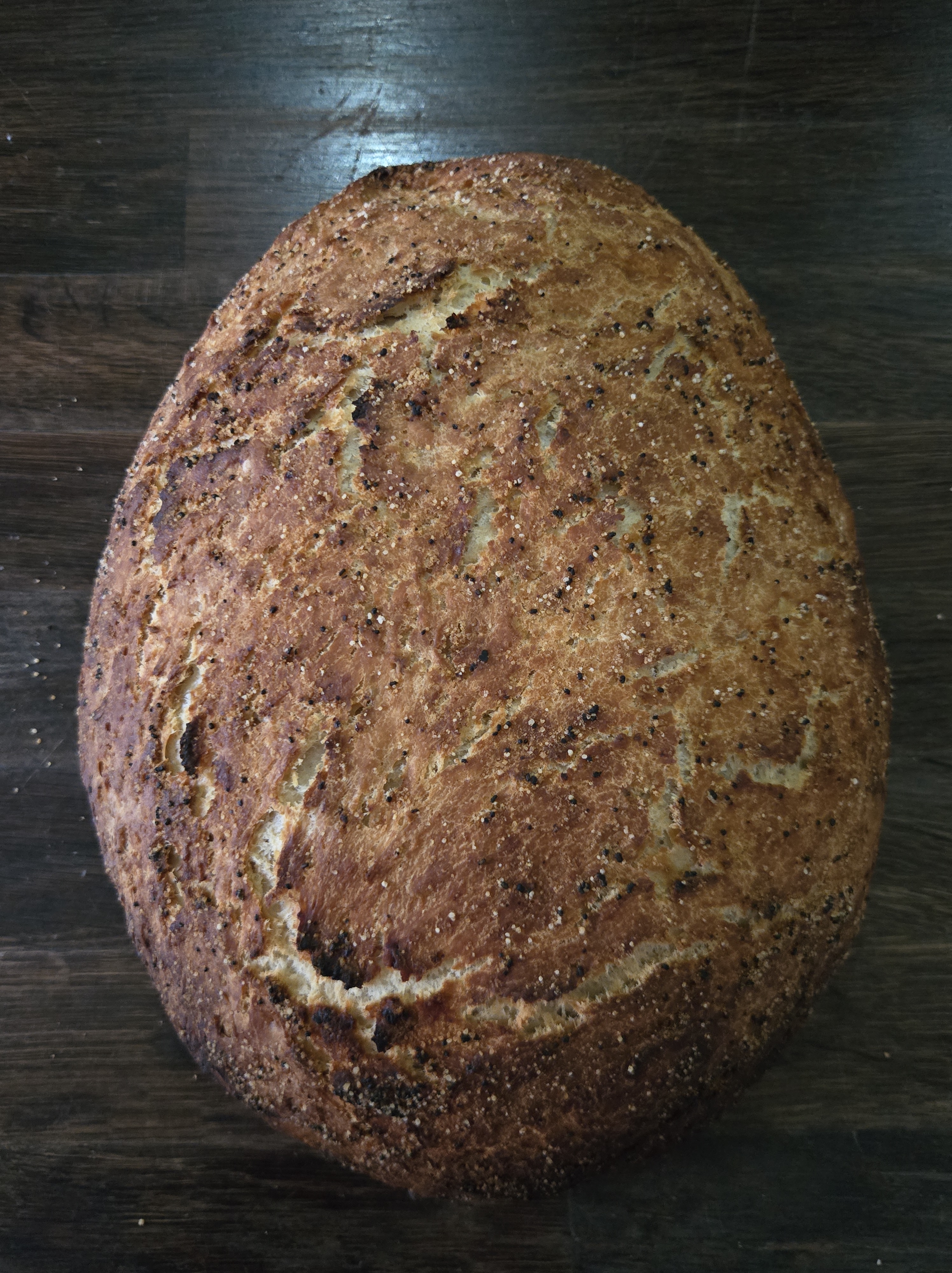6.BAKE ON 220° FOR 10 MINUTES AND THEN LOWER TO HEAT THE OVEN TO 200° FOR A FURTHER 20-30 MINUTES TILL GOLDEN BROWN AND THE BREAD SOUNDS HOLLOW WHEN TAPPING ON THE BOTTOM.