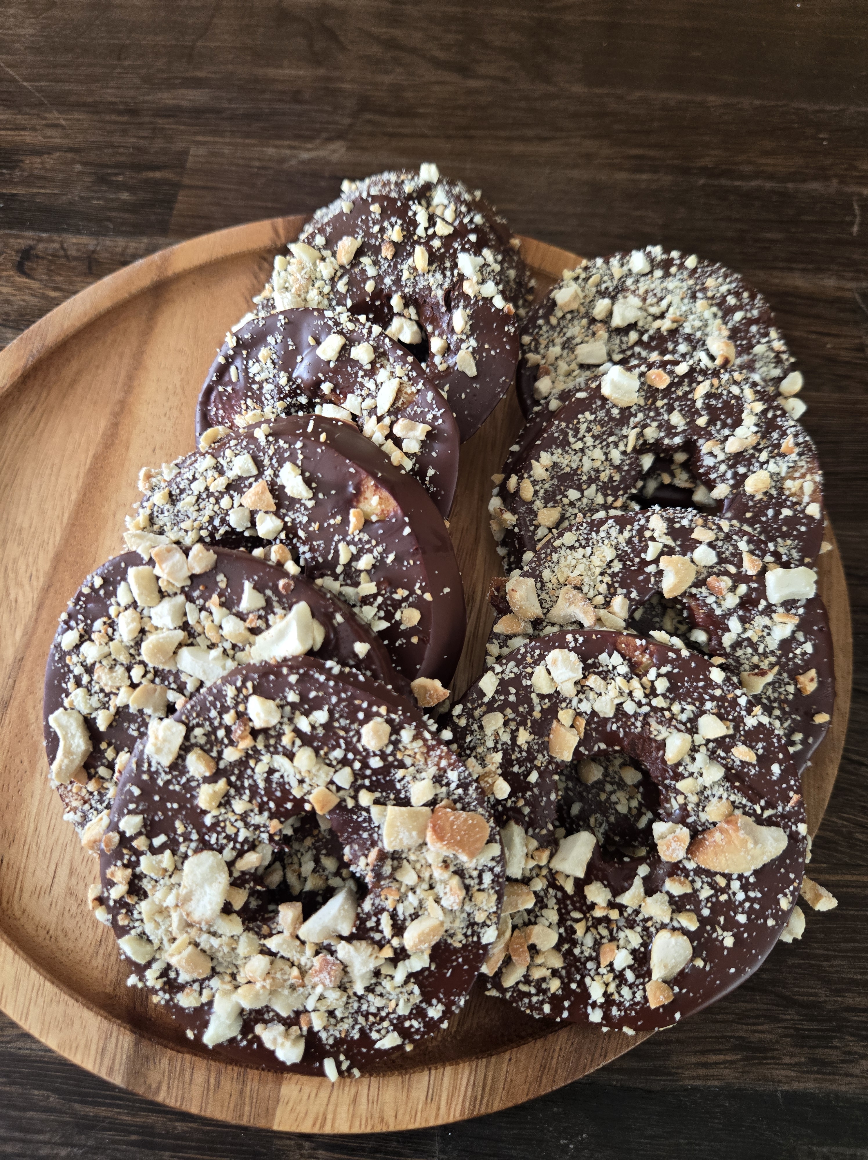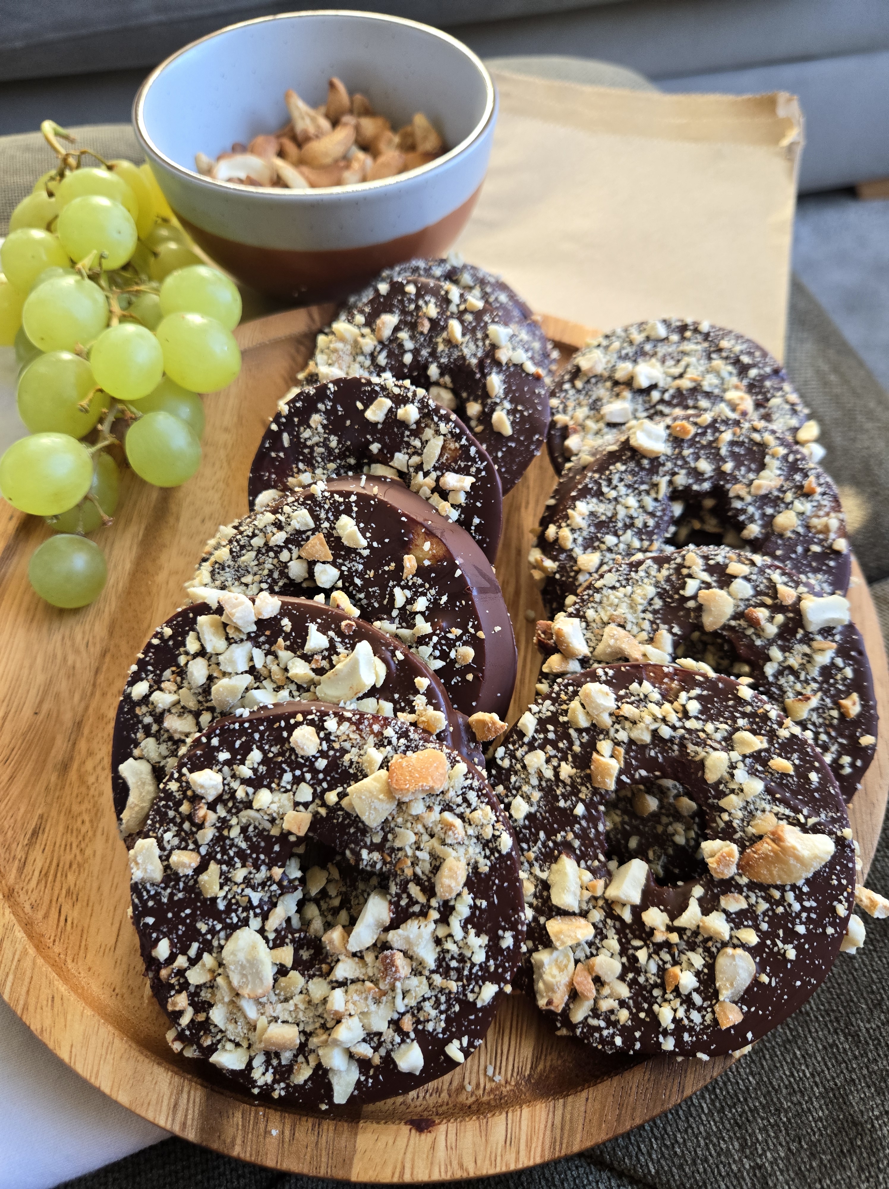 THE PERFECT PICK ME UP SNACK TO HELP WITH THE SWEET CRAVINGS! DARK CHOCOLATE COVERED APPLES SPRINKLED IN CRUSHED CASHEW NUTS