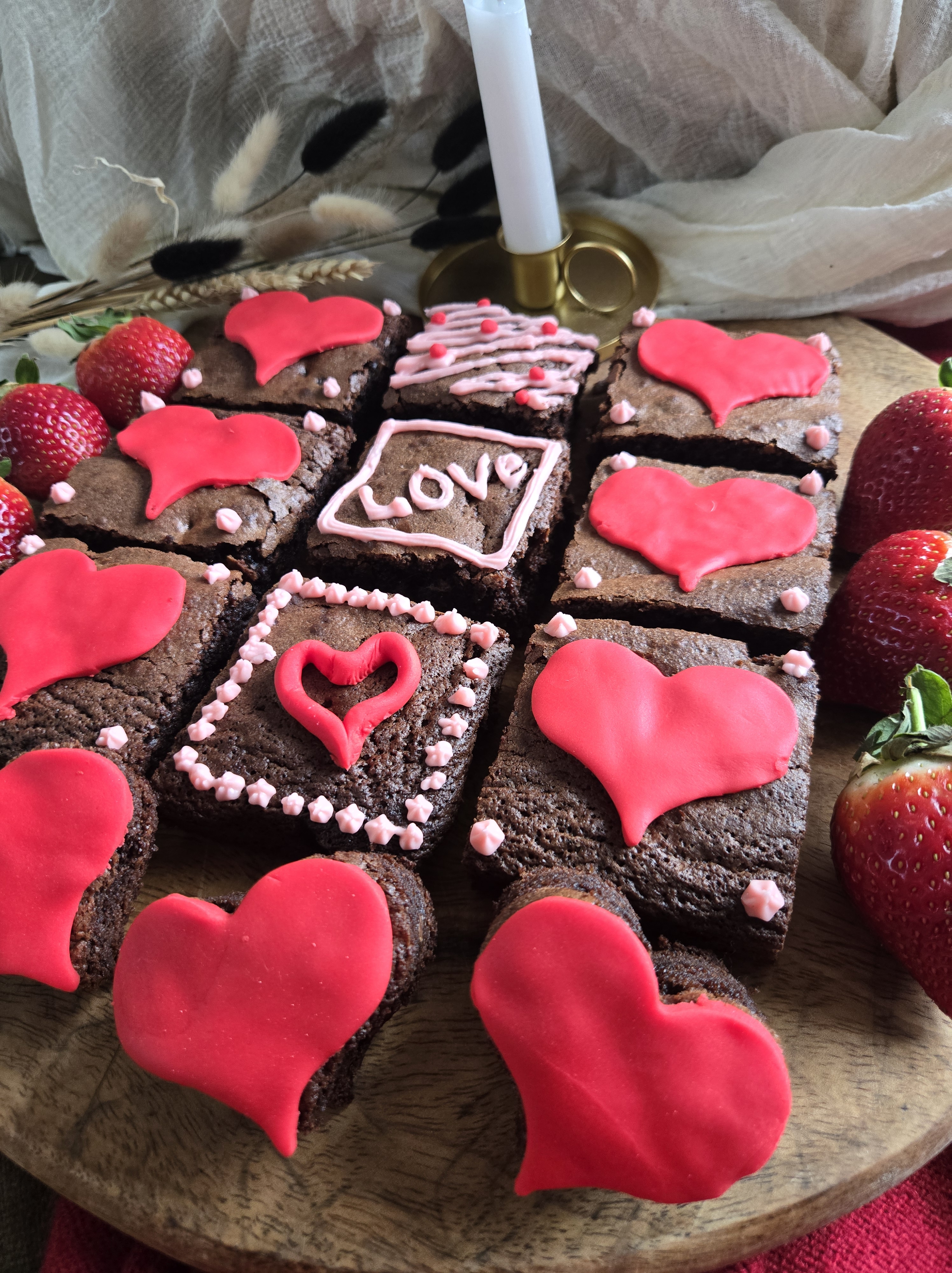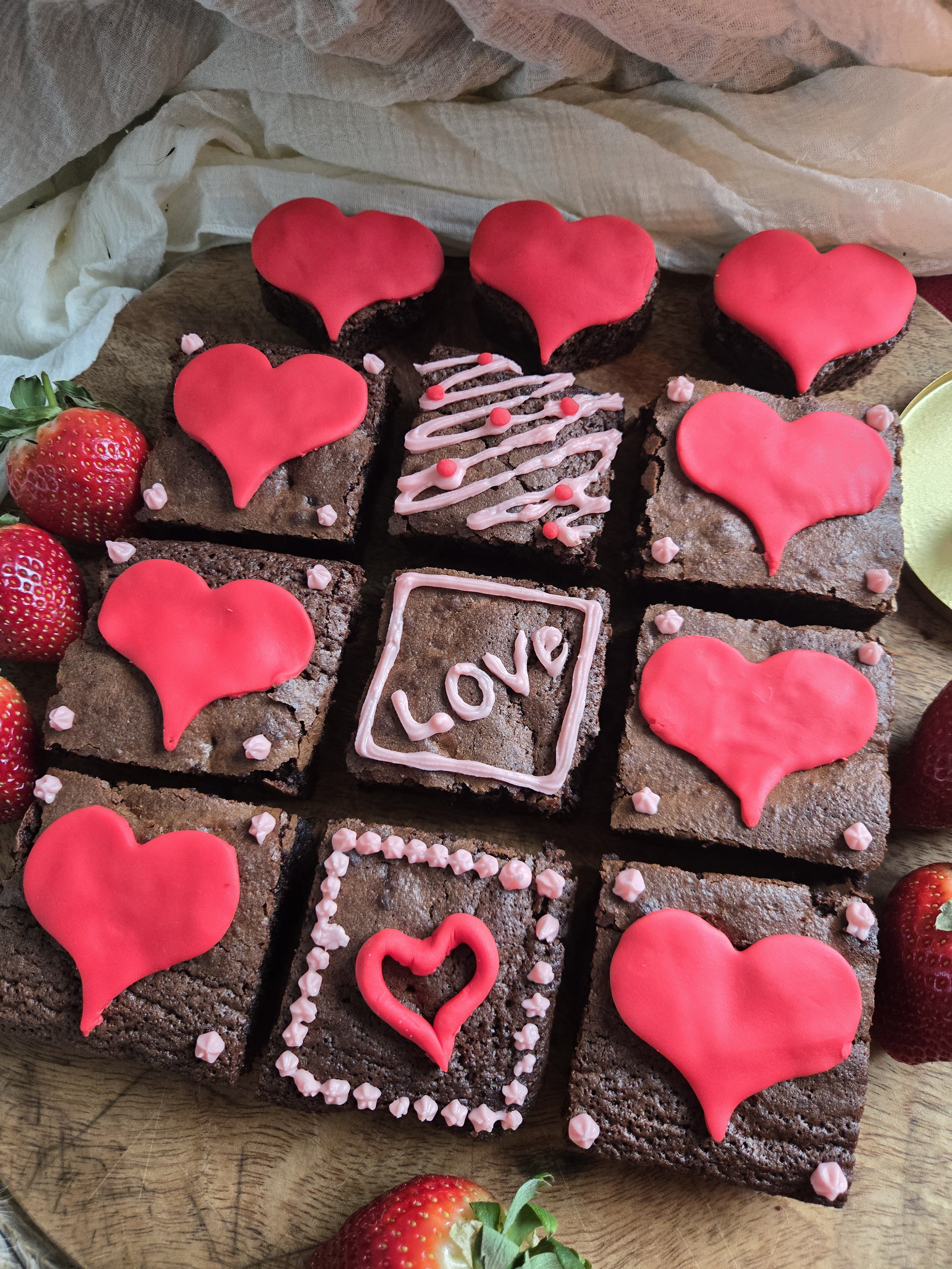 CHOCOLATE BROWNIES DECORATED WITH LOVELY HEART DECORATIONS