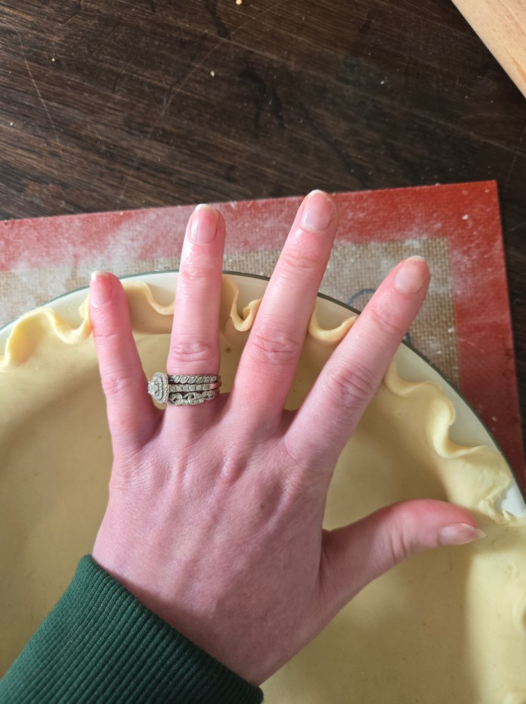 IF YOU WANT TO MAKE THE WAVY CRUST THEN USE YOUR HAND AND PULL THE PASTRY TOWARDS YOU (LIKE BELOW)