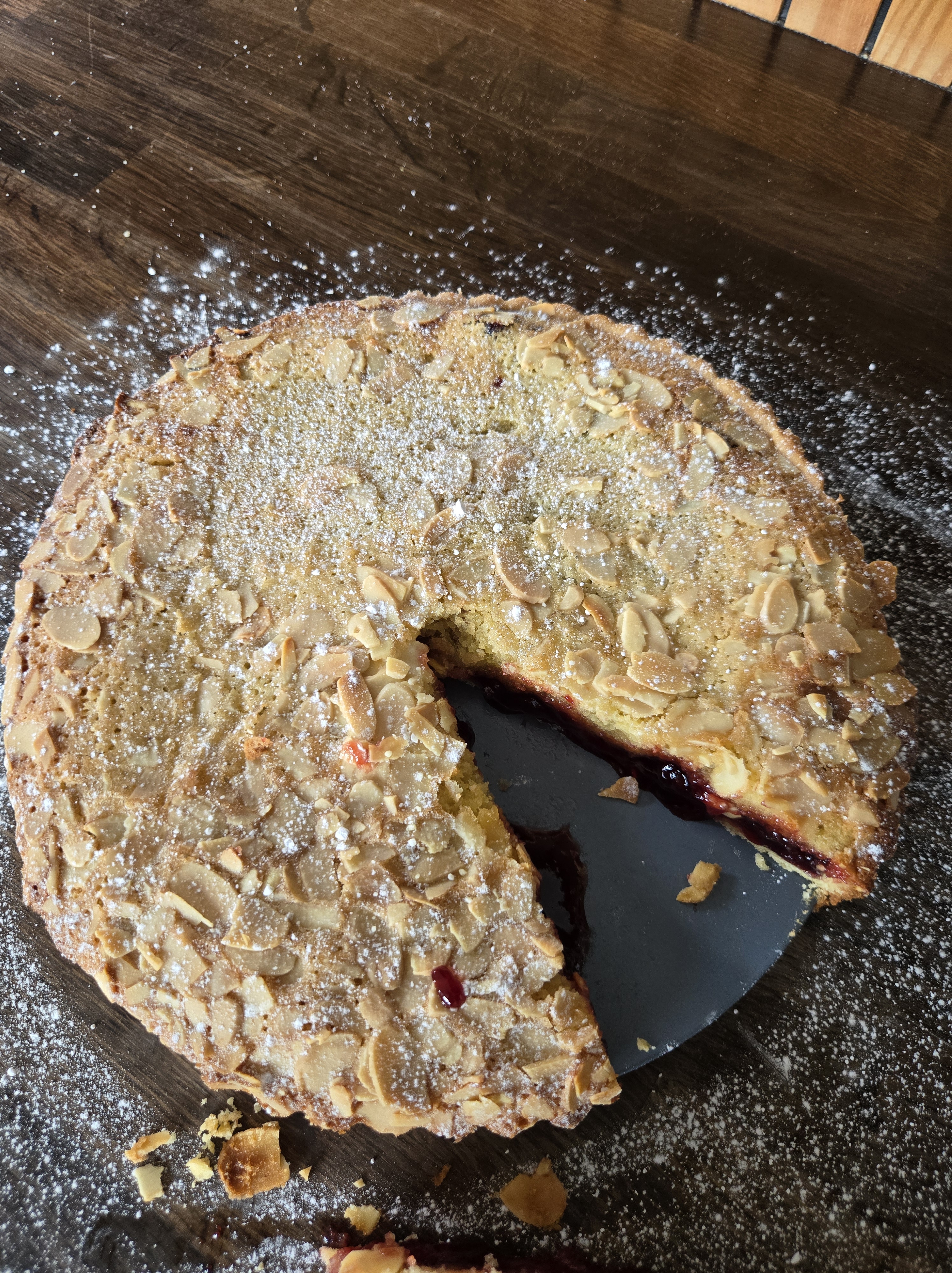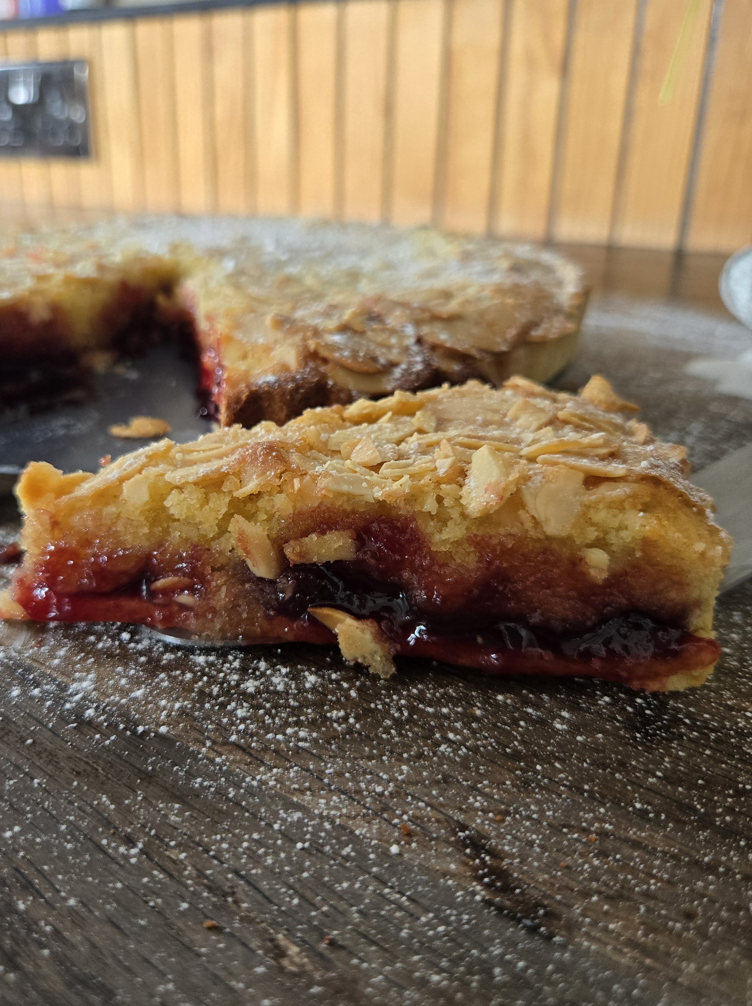 A DELICIOUS TART IN A SWEET PASTRY BASE WITH A TANGY CHERRY JAM AND ALMOND FRANGIPANE FILLING