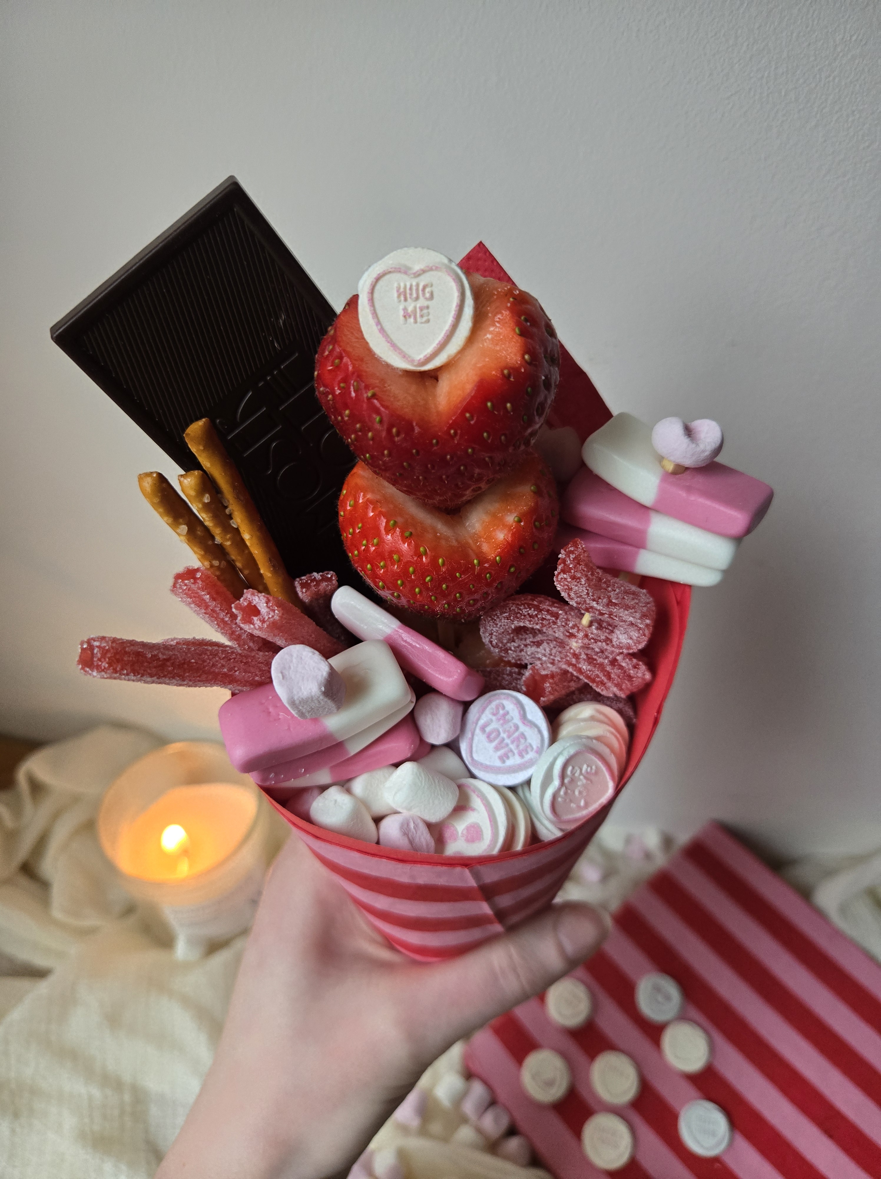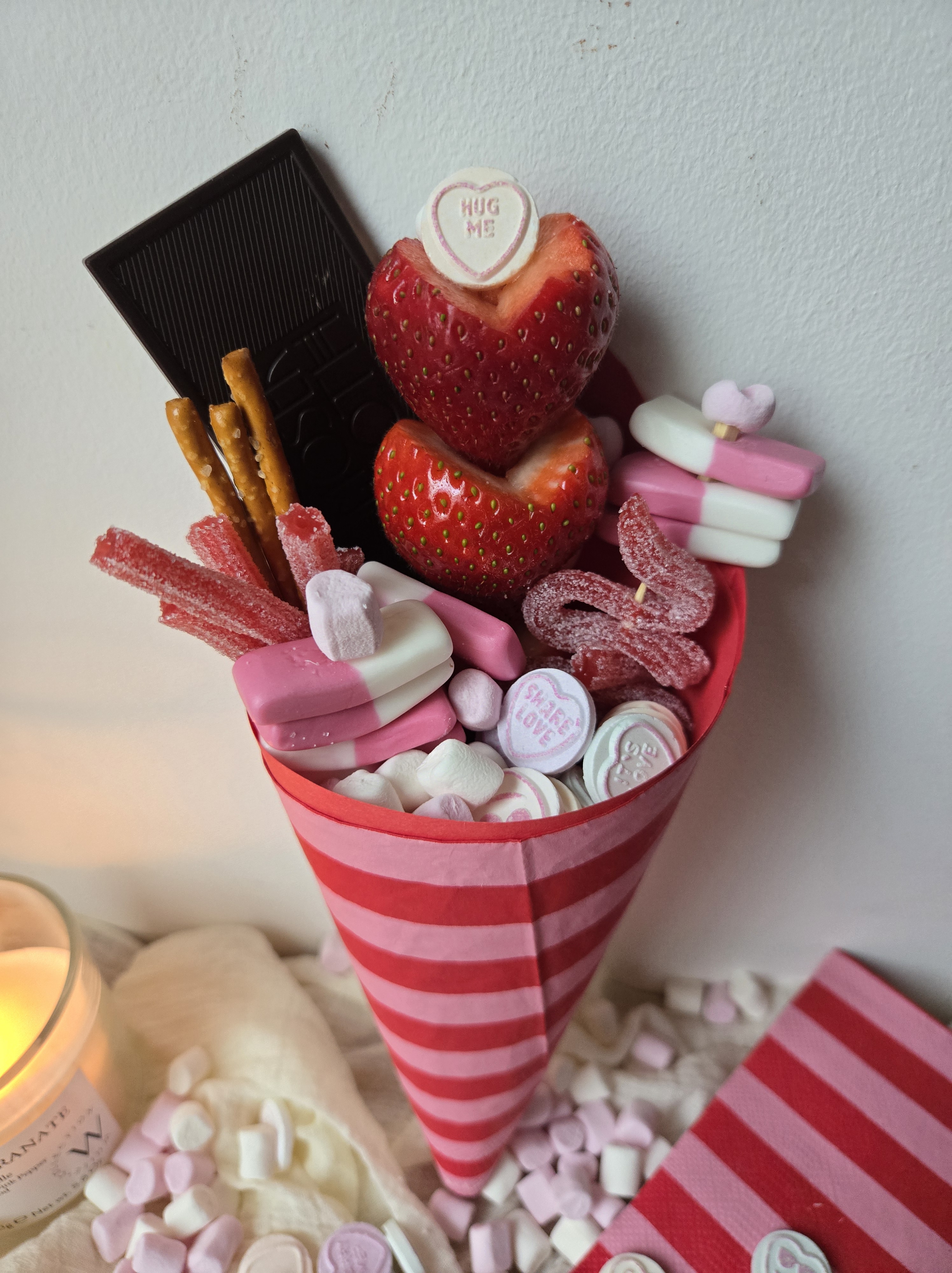 OR HOW ABOUT MAKING SOME CANDY CONES 🍬🍬🍬🍬🍬🍬🍬BUDGET FRIENDLY HOMEMADE GIFTS FILLED WITH ALL THE FAVOURITE SWEET TREATS. I USED SOME CHEAP NAPKINS AND PAPER TO MAKE THE CONES!